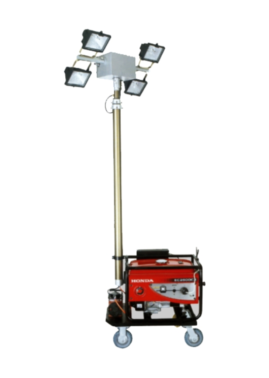 (三) 发电机部件采用EC2500Cx2本田发电机,该工作灯在使用发电机作为电源时,发电机组一次充满燃油连续工作时间可达13小时,在有市电的场合可直接使用市电满足长时间的照明需要;
